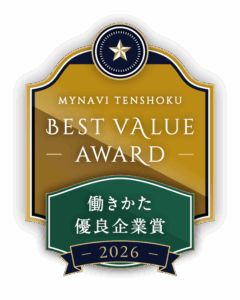 給与アップ/働き方改善/キャリア支援に取り組む企業を表彰する「マイナビ転職BEST VALUE AWARD」において「働きかた優良企業賞」を受賞致しました。